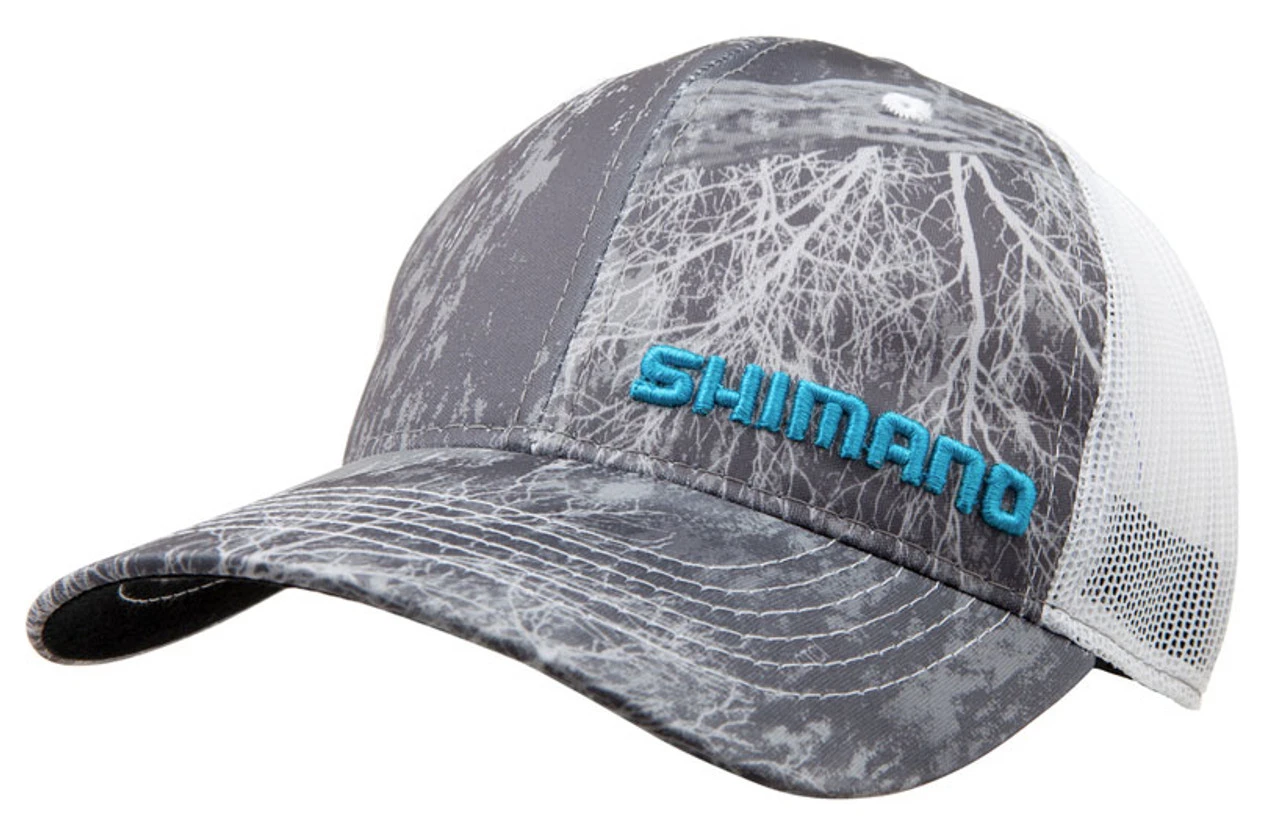 Shimano Realtree Fish Camo Trucker Hats are trucker style hats with double-knit front panels and mesh back panels for a cooling effect during those warmer days.